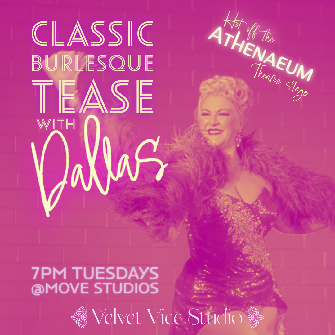 Hot off the Athenaeum stage in Melbourne, Dallas is back teaching! Be bold, be sexy and be empowered in a 4 week class of Burlesque Tease.